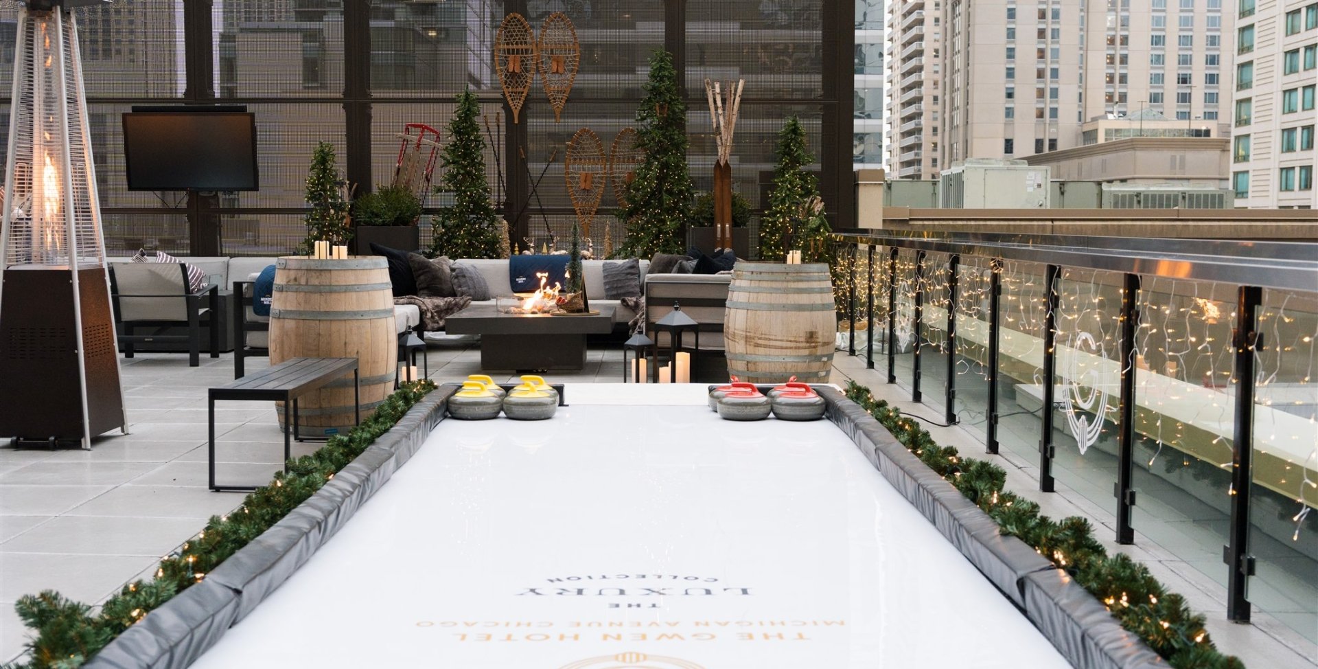 Celebrate the chill in style at Upstairs at The Gwen’s rooftop terrace. Challenge your friends to a game of curling, then cozy up with indulgent boozy hot chocolate, spiced mulled wine, and handcrafted signature cocktails. Pair these with a curated menu of seasonal delights for the ultimate cold‑weather retreat.